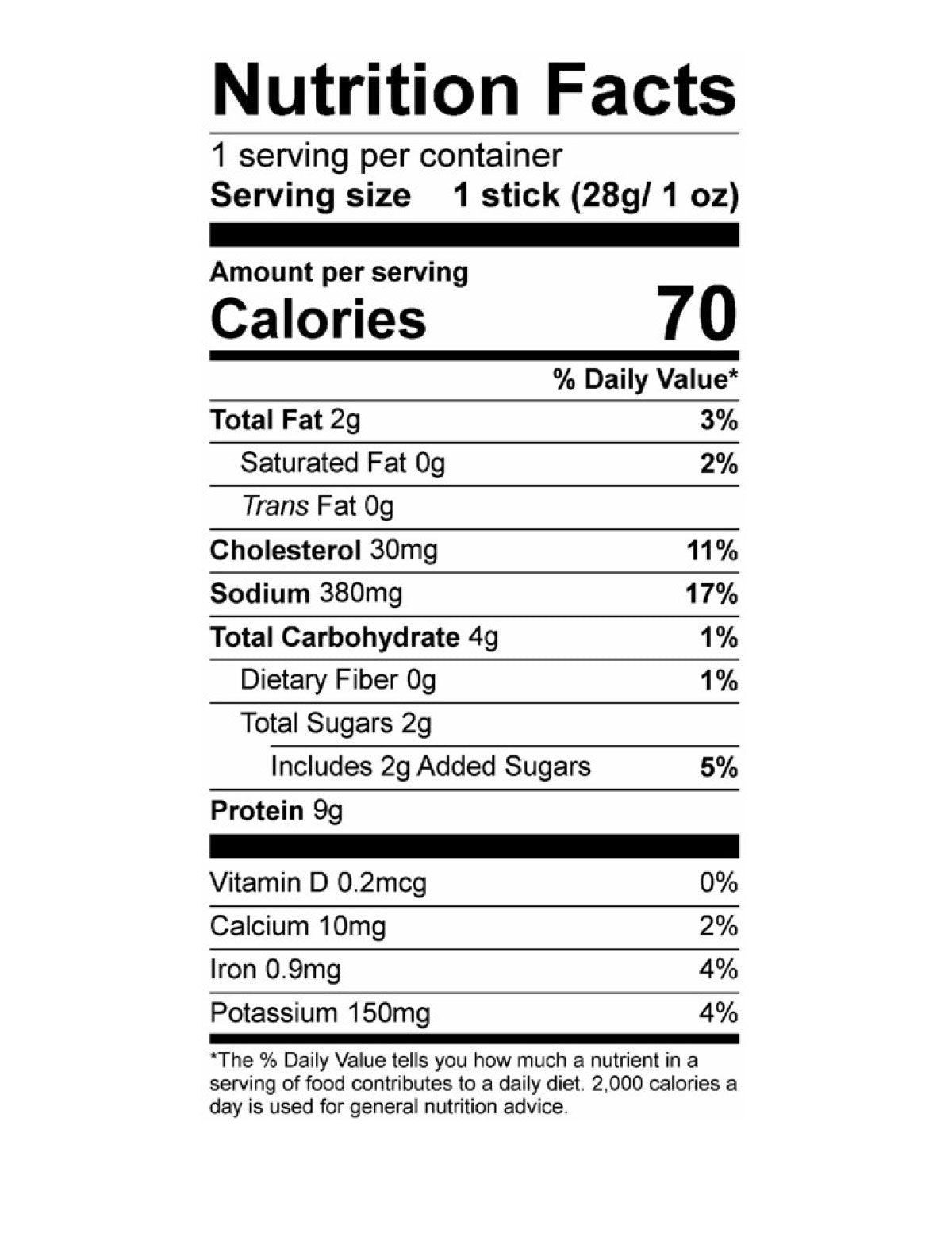 Turkey, sweetened dried cranberries (cranberries, cane sugar), natural flavor, 2% or less of water, cultured celery salt (cultured celery extract, sea salt), brown sugar, encapsulated citric acid, sea salt, dehydrated onion, dehydrated garlic, cherry powder, salt, in a colored beef collagen casing.
